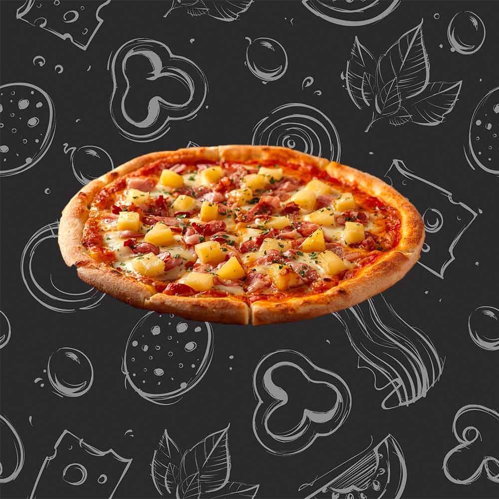 Salsa de tomate casera/Piña/Jamon/Queso/Orégano